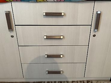 - Материал: ЛДСП с текстурой дерева, кромка ПВХ, металлические ручки.