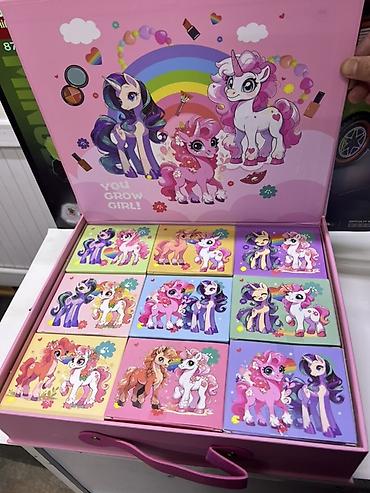 - Внутри 9 цветных коробочек‑секций с иллюстрациями пони; формат «open surprise».