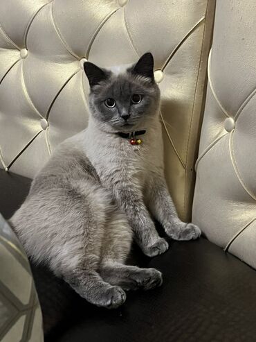 - Серо-голубая (шёрстка с затемнёнными поинтами на мордочке, ушках, лапках и хвосте), плюшевая текстура шерсти, выразительные глаза.