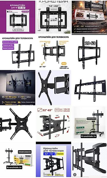 - Настенные кронштейны для ТВ 32–55": выдерживают до 50 кг, простая установка.