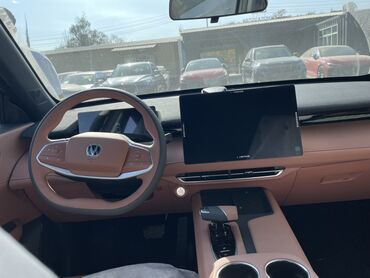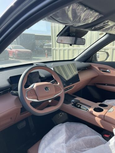 Этот кроссовер выделяется смелым внешним видом, технологичным салоном и продуманными удобствами для водителя и пассажиров. Модель на фото — Changan Uni-Z с премиальным интерьером и крупным медиаэкраном. Колеса и элементы салона защищены транспортировочной пленкой/чехлами.
