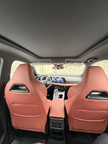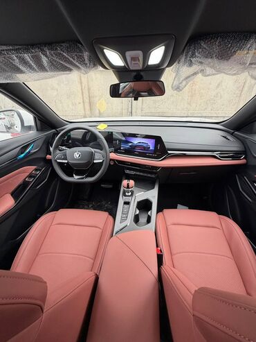 - Салон: двухцветная отделка с кожаной/эко‑кожаной обивкой в терракотовом тоне, передние кресла с выраженной боковой поддержкой, широкий центральный подлокотник.