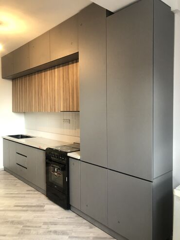 Кухонный гарнитур, представленный на изображениях, отличается современным дизайном и функциональностью. Доступны различные варианты компоновки и цветовых решений, включая бежевые, серые и двухцветн...
