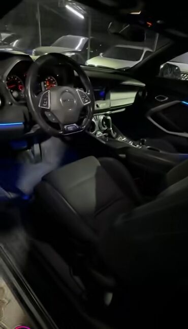 Эффектный американский масл‑кар с ярким внешним видом и спортивной посадкой. Подходит для тех, кто ценит драйв и выразительный стиль. Цвет и интерьер подчёркивают «чёрный» образ, освещение салона создаёт атмосферу в тёмное время суток.