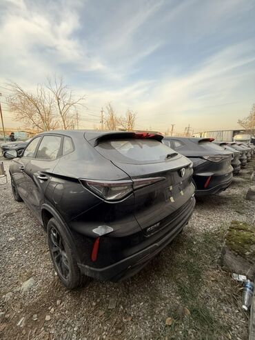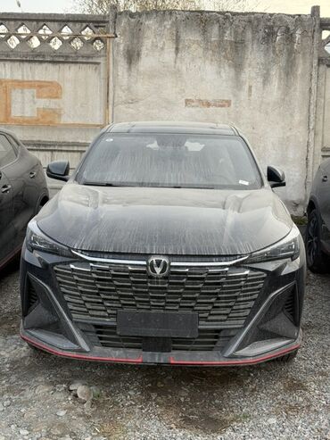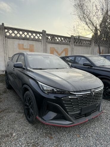 Changan coupe-кроссовер (эмблема V на решетке), черный цвет с акцентами красного цвета по периметру бампера и порогов. Агрессивная передняя оптика, крупная решетка, спортивные бамперы.