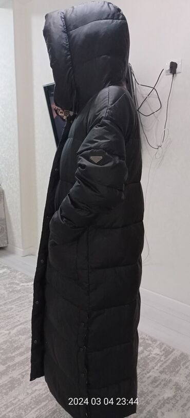 Пуховик длинный с капюшоном, светло-серого цвета, почти новый, размер XXL. Очень тёплый, качественный. Легко чистится вручную и стирается в машинке в режиме "деликатно".
