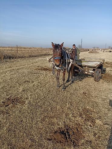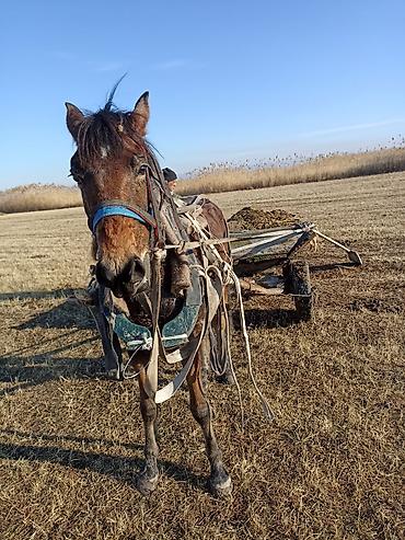 - Лошадь запряжена, ходит в телеге, перевозит грузы по полю/ферме.