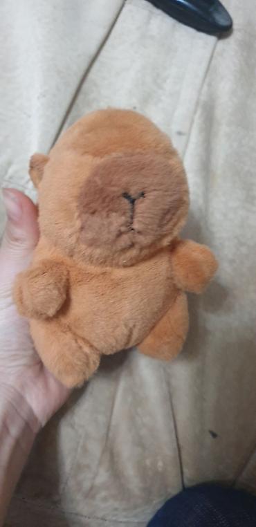 - Плюшевый медвежонок/зверёк карамельного цвета, минималистичное личико, пухлые лапки. Плотная набивка, устойчиво сидит.