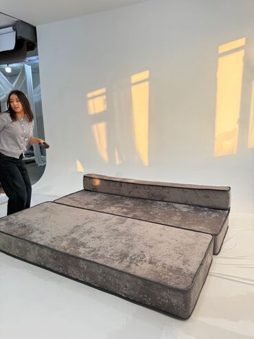 - Быстрая трансформация: можно использовать как диван без подлокотников, кушетку с высокой спинкой или разложить в односпальное место/мат.