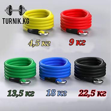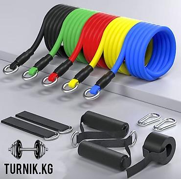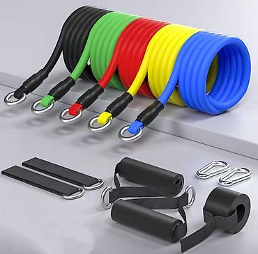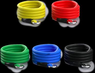 - Комплект эластичных трубчатых резинок разной нагрузки с металлическими кольцами/карабинами для быстрого крепления.