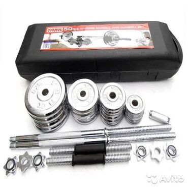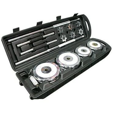 Набор штанга + гантели в кейсе, хромированный, общий вес 50 кг.