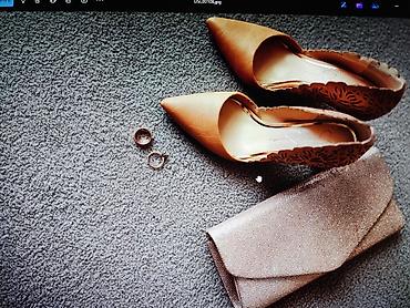 - Клатч-конверт в оттенке шампанского/пудрового золота с деликатным мерцанием. Жесткая форма, откидной клапан. Подойдет к туфлям по цвету и фактуре.