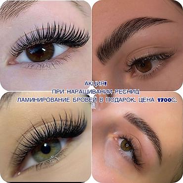 - Акция: при наращивании ресниц — ламинирование бровей бесплатно. Цена: 1700 с.