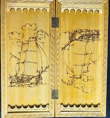 Нарды ШАХМАТЫ на заказ ручной работы из дерева, украшенные резьбой. На заказ Модели имеют различные декоративные узоры и тематические изображения, включая шахматные доски на внешней стороне. Из...