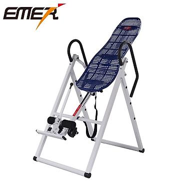 Инверсионный стол EMER рассчитан на пользователей весом до 150 кг и ростом от 147 до 198 см. Угол наклона можно зафиксировать двумя способами: с помощью металлического ограничителя с тремя уровнями регулировки или ремешком для фиксации на любом уровне. Спинка тренажера выполнена из прочного углепластика с анатомическим изгибом и вращается на подшипниках. Тренажер легко складывается, а его каркас изготовлен из квадратной арматуры сечением 40x40 мм. Для надежной фиксации ног предусмотрен длинный рычаг, позволяющий закрепить ноги без необходимости наклоняться, а дополнительный фиксатор обеспечивает повышенную безопасность. Одно из ключевых преимуществ стола — возможность наклона под отрицательным углом. В положении полной инверсии спинка тренажера отстоит от тела на 30–35 см, что позволяет выполнять различные упражнения на скручивание, разгибание и укрепление мышц брюшного пресса. Регулярные занятия на инверсионном столе помогают снизить или устранить боли в спине, улучшить осанку, снять мышечное напряжение и стресс, улучшить кровообращение и насыщение мозга кислородом, укрепить суставы и связки, а также стимулировать лимфоток. Размеры в рабочем состоянии: 110x70 см, в сложенном — 45x70 см.