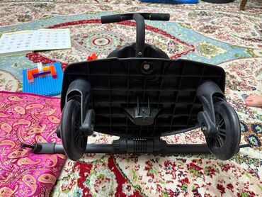 - Три колеса: два спереди на платформе и одно поворотное сзади для устойчивости и маневренности.
