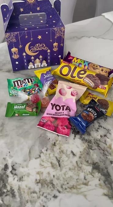 Подарочные наборы в тематических коробках к Рамадану Что внутри: - Ассорти сладостей и снеков: печенье/рулет, шоколадные сладости, пакетик сухофруктов/изюма, небольшие угощения в индивидуальной у...