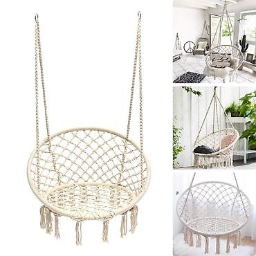- Тип: круглое подвесное кресло-кокон с плетением макраме и кистями