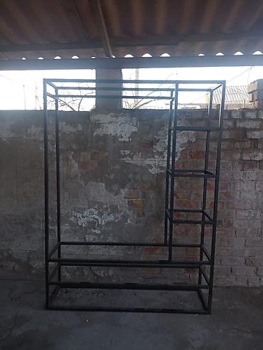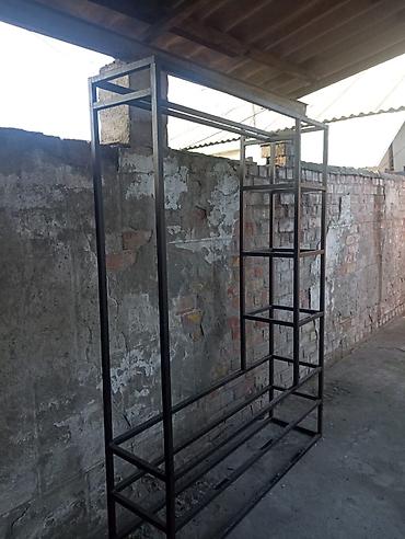 - Особенности: жесткая рама, устойчивость за счет продуманных связей; возможность обшивки деревом/ЛДСП, установки штанг и полок по месту; лаконичный индустриальный стиль.