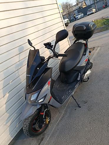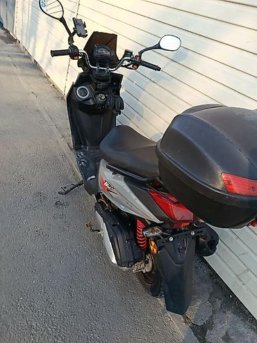 Скутер городского типа 125 см³ (по компоновке — вариатор, воздушное охлаждение). Черный цвет, агрессивная оптика, передний и задний свет, поворотники. Установлен центральный подножка и боковая, зер...
