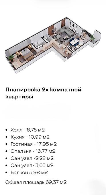 Продается 2х ккв. ПСО в завершенном доме. ЖК Сон Кол+ СК Эмарк Групп. Адрес: мкр. Кок-Жар, ул. 7 апреля 27/2. Площадь: 69,24м2. Этаж: 8/12. Дом сдан ПСО, можно делать ремонт, люди живут, лифты ...