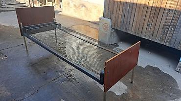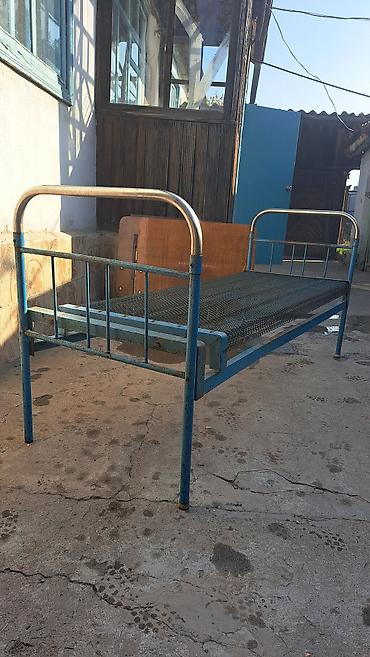 Металлическая односпальная кровать с сетчатым основанием. В наличии 4 штуки. С деревянным изголовьем и округлыми углами по 3000 сом, полностью металлическая 2000 сом, с деревянным изголовьем и острыми углами 2500 сом.