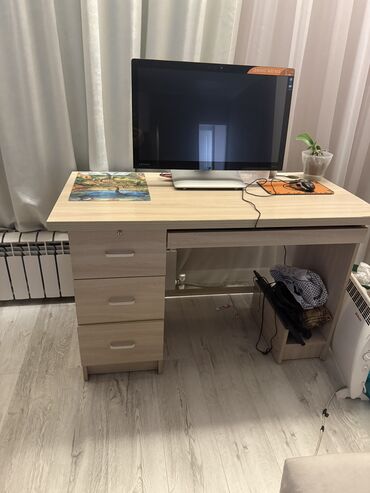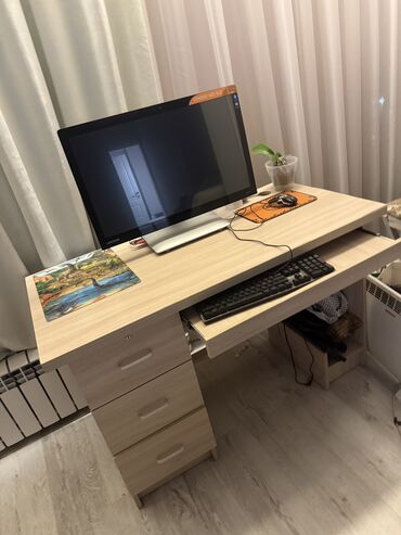 Компьютерный стол с надстшройкой (белый/светлый дуб). Особенности: - Просторная столешница для ноутбука/ПК, учебы и работы. - Выдвижная полка под клавиатуру. - Верхняя надстройка с открытыми полка...