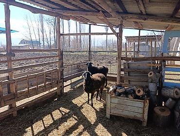 Овцы чёрные, крупные, с густой кудрявой шерстью. На фото — пара взрослых животных с длинными ногами и крепким корпусом, ухоженные, очень упитанные содержатся в просторном деревянном загоне с навесом и кормушками. Шерсть тёмная, равномерная, плотная — подходит для стрижки и дальнейшей переработки (пряжа, войлок). Спокойный нрав, хорошо держатся в стаде, приучены к загону и кормлению из яслей. Подойдут для разведения, или на и шерсти. Возможна продажа парой. выращены в натуральных условиях без уколов и ГМО , обе ярочки. Эки семиз кой сатылат, без укол и ГМО, нукура чоп , жем менен кармалган. кочкорго кошулган эмес. находятся в с.Туз, выше Канта
