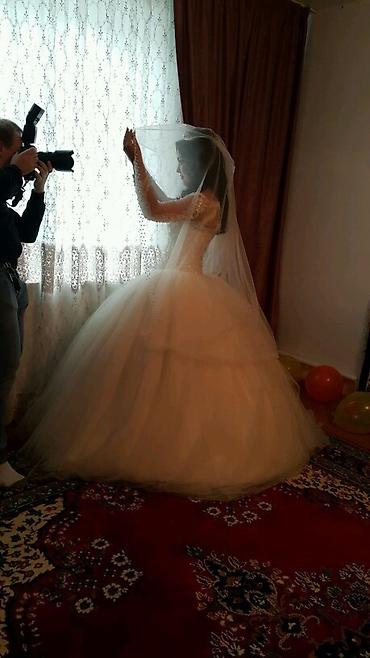 Свадебное платье, S, Дизайнерское, С фатой, Со шлейфом, Фатин, Кыргызстан, Б/у