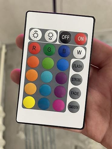 - Пульт дистанционного управления: выбор цветов и режимов (FLASH, STROBE, FADE, SMOOTH), кнопки включения/выключения и регулировки яркости.