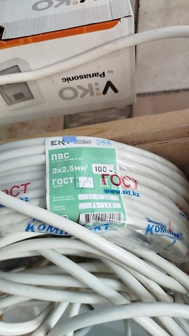 Кабель медный монолит 3×2.5, ГОСТ. Цена: 100 сом за метр. Описание: - Три однопроволочные медные жилы сечением 2.5 мм² каждая (фаза/ноль/PE — коричневый, синий, жёлто‑зелёный). - Тип: силовой,...
