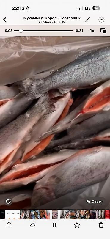 Свежезамороженная форель, целая, мясо красное, кормилась европейскими кормами. Речная, нет запаха! Цена - 500с за кг Вес 1-1,5кг Торг есть если будете брать много