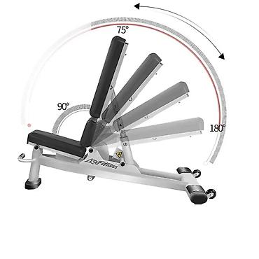 Подходит для: жимов лежа/под наклоном/вверх, упражнений на плечи, спину, бицепс, трицепс и корпус; домашний и коммерческий зал. Брендинг на раме: LXF Fitness (Lion Fitness).