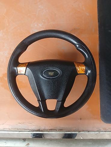 - Трехспицевый руль, обтянутый черным материалом с текстурой.