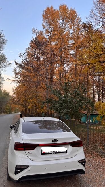 KIA K3 (седан), белый цвет, кузов последнего поколения с агрессивной решёткой и светодиодной оптикой.