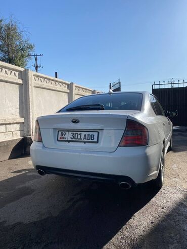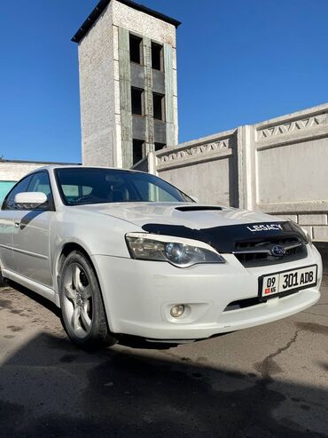 Subaru Legacy седан, белый цвет, правый руль. Атмосферный/турбированный оппозитный бензиновый мотор (воздухозабор на капоте), полный привод Symmetrical AWD. Автоматическая коробка передач. Литые диски Subaru, низкопрофильная резина. Двухствольная выхлопная система. Передний и задний туманки, ксенон/проекторная оптика, омыватели фар. Аэродинамический дефлектор капота с надписью Legacy. Тонированные стекла, «акулий плавник» антенна на крыше. Салон пятиместный, 4 двери. Номерной знак KG (09 регион). Отличный динамичный седан с устойчивой управляемостью и высоким уровнем безопасности благодаря полному приводу. Подойдет для города и трассы.