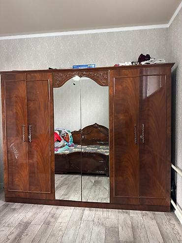 - Центральный блок: две большие зеркальные двери, сверху декоративный резной элемент.