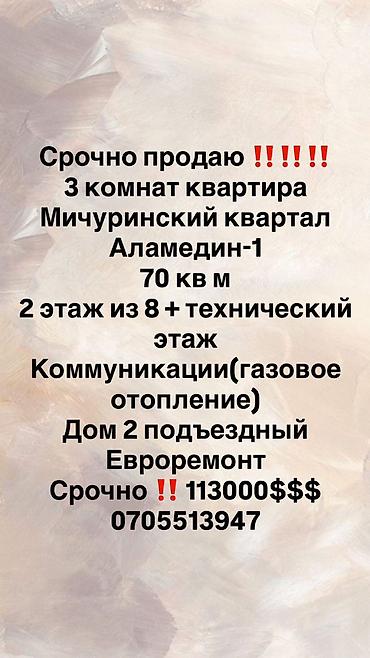 Продается 2-комнатная квартира в районе Аламидин -1 Застройщик: Бишкек Курулуш Адрес: Ленина 12 ▪️ комнаты: 2 ▪️ площадь: 53м2. ▪️ этаж: 8/10 ▪️ документы: Дду ▪️коммуникации: автономное газо...
