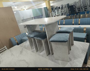 Стол и четыре табуретки Абсолютно новые хорошие качества Доставка по городу бесплатно Звоните пишите ватсап Есть расцветки В рассрочку нет!!!