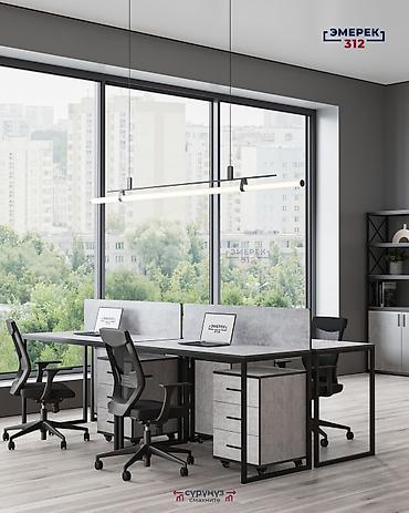 Стол лофт с тумбой 120»60»75 цемент темный Эмерек 312 Компьютерный
