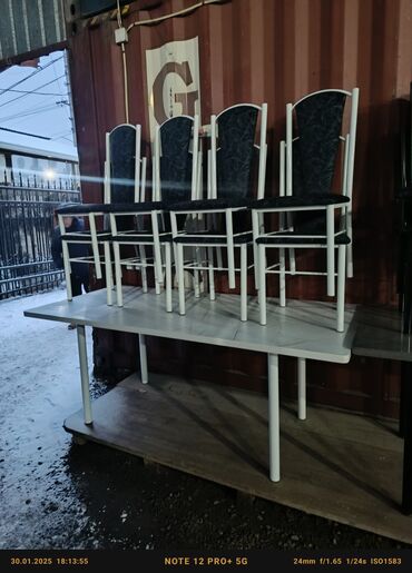 Стол и четыре табуретки Абсолютно новые хорошие качества Доставка по городу бесплатно Звоните пишите ватсап Есть расцветки В рассрочку нет!!!