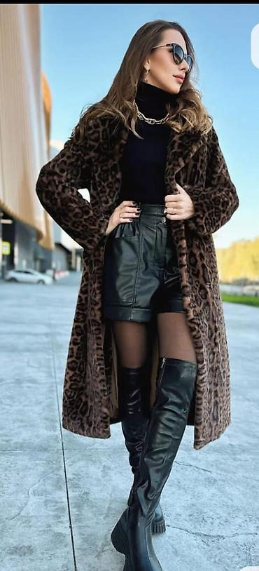 Шуба, Длинная модель, Леопардовый принт, M