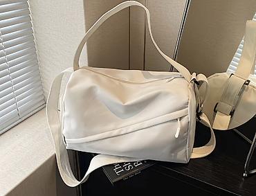 Спортивная/дорожная сумка цилиндрической формы, цвет молочный/белый.