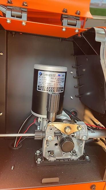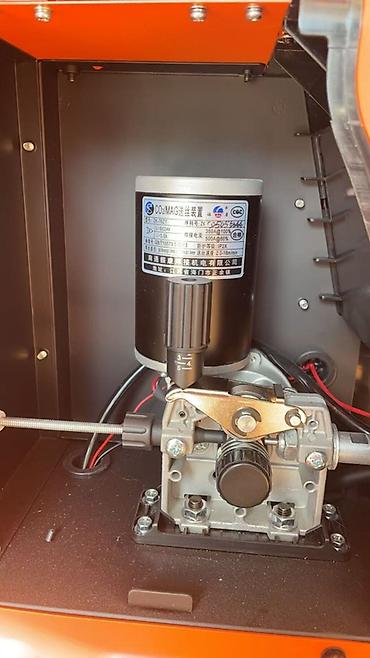 - Электродвигатель подающего узла с паспортной табличкой, питание DC, рассчитан на стабильную подачу проволоки.