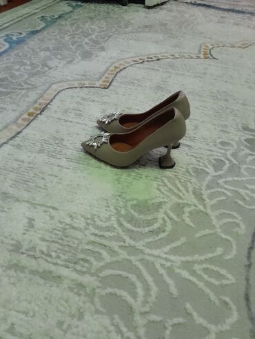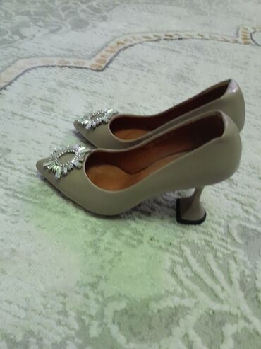 Женские туфли-лодочки с открытой пяткой и ремешком - Модель: лодочки с острым носком, открытая пятка, тонкий ремешок вокруг щиколотки с металлической пряжкой. - Цвет: шампань/светло-золотистый. - ...
