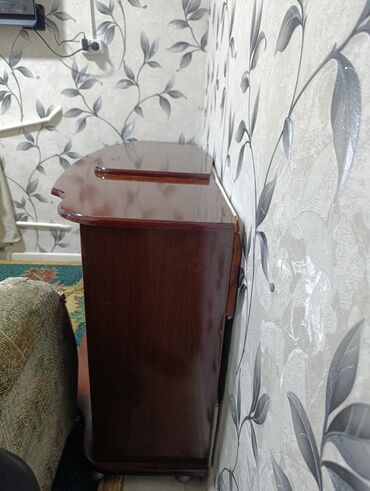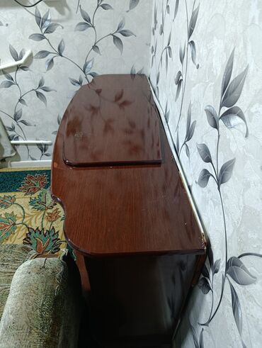 - Материал: ЛДСП с глянцевым темным (под махагон/венге) покрытием.