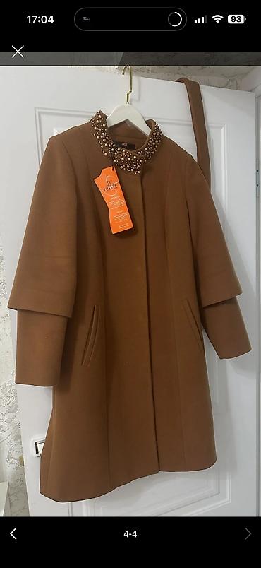 Новое демисезонное пальто тёплого бежевого цвета размера М (42-44) на стройную девушку, прямого кроя. Производство Китай. Длина изделия - 100 см, длина рукава - 55 см. Цена - 1500 сом. Самовывоз...