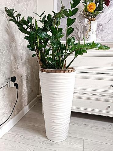 Замиокулькас (долларовое дерево) в высоком декоративном кашпо
