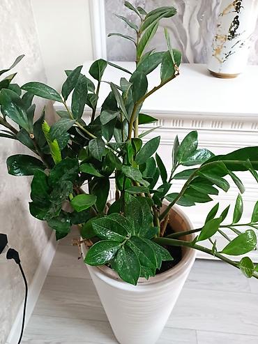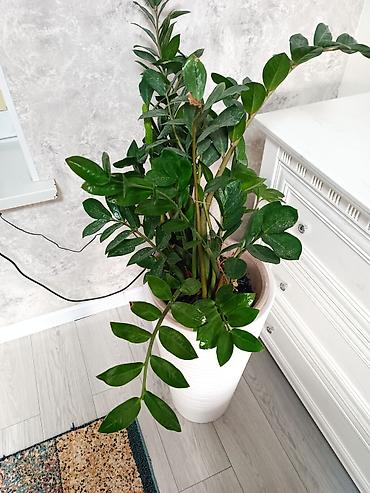 Замиокулькас (долларовое дерево) в высоком декоративном кашпо -