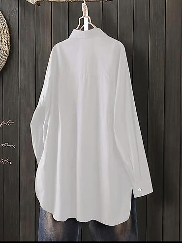 Белая женская рубашка-оверсайз с длинным рукавом 54-68р ( лён Сантана) 25 шт по 500 сом - Классический отложной воротник - Застёжка на ряд пуговиц спереди - Свободный прямой крой, комфортная посад...